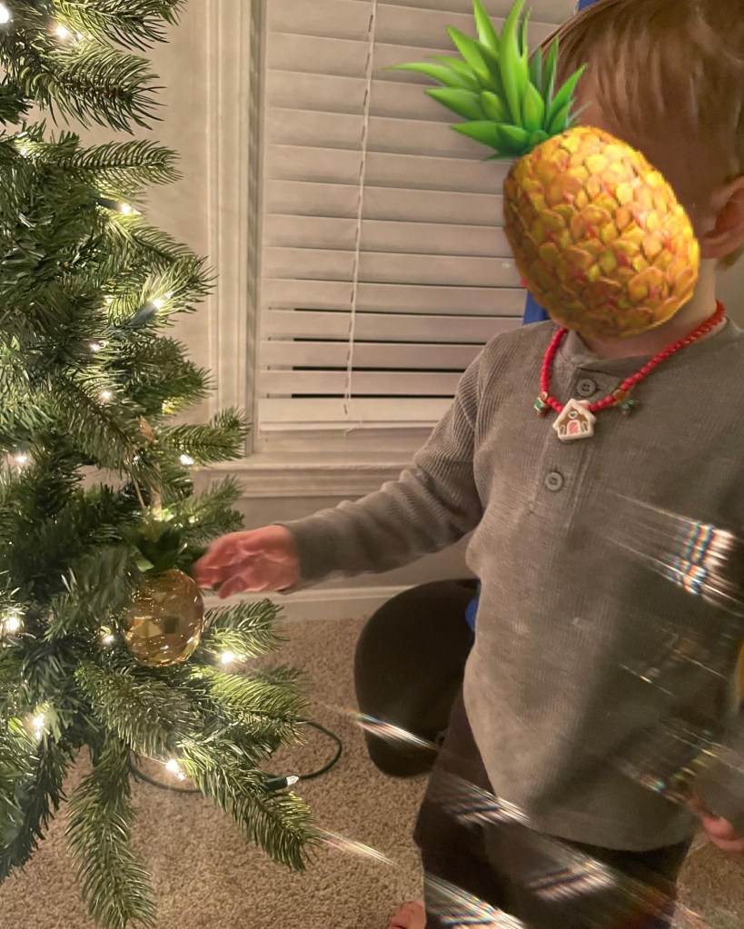 My son hung the pineapple this year in honor of his sister and his adorable little self, as well as in memory of his siblings not with us earth-side.